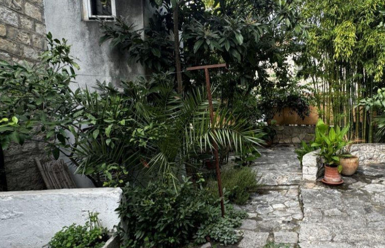 Privatus sodas su lauko valgykla, kepsnine ir Viduržemio augalais